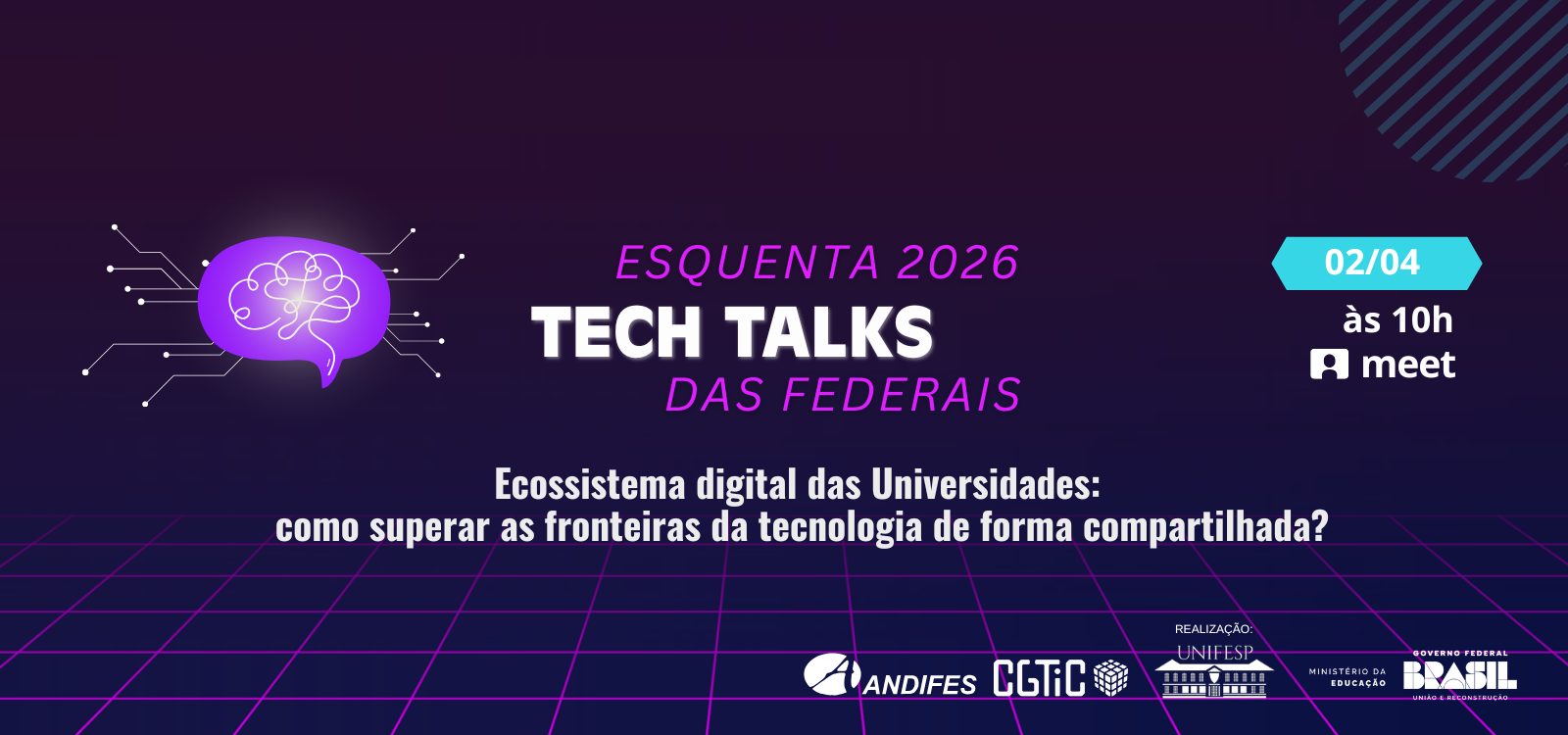 No próximo dia 2 de abril de 2026 (quinta-feira), das 10h às 12h, ocorrerá a segunda temporada do Tech Talks – Edição Esquenta. O evento terá transmissão ao vivo.