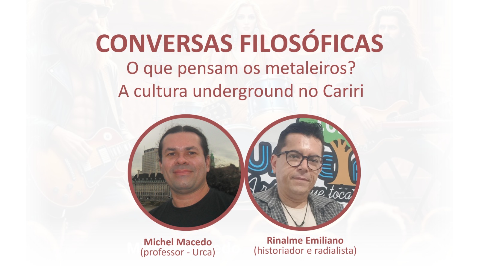 Nesta sexta-feira, 12 de dezembro de 2025, o curso de filosofia da Universidade Federal do Cariri (UFCA) realizará mais uma edição do “Conversas Filosóficas”, com o tema “O que pensam os metaleiros? A cultura underground no Cariri”.