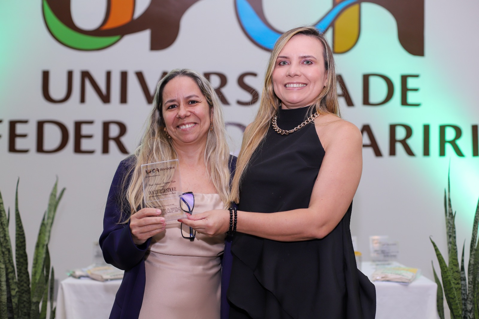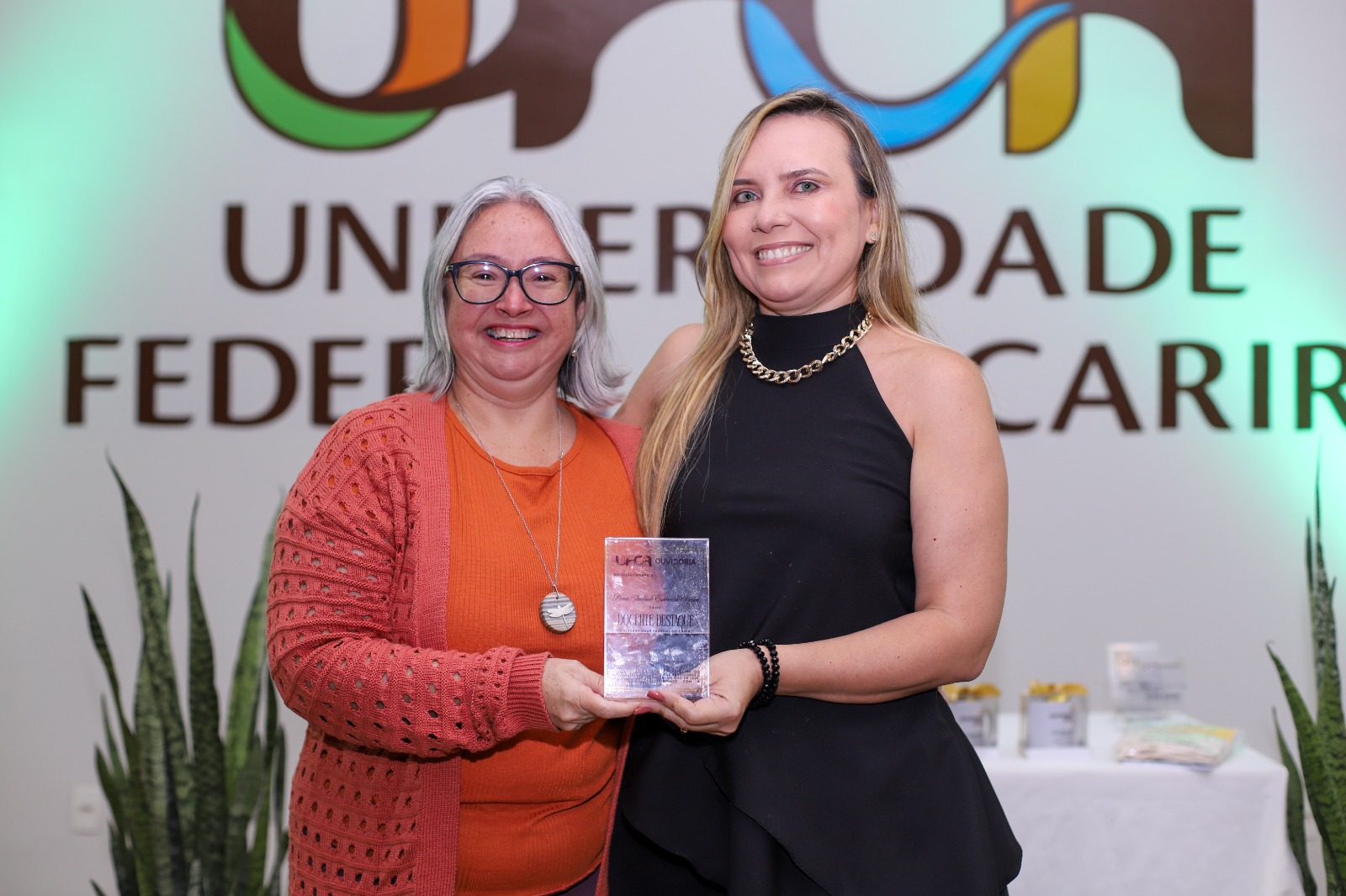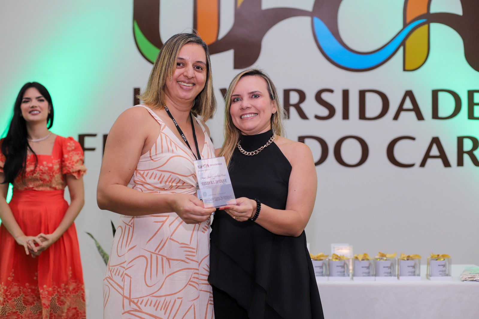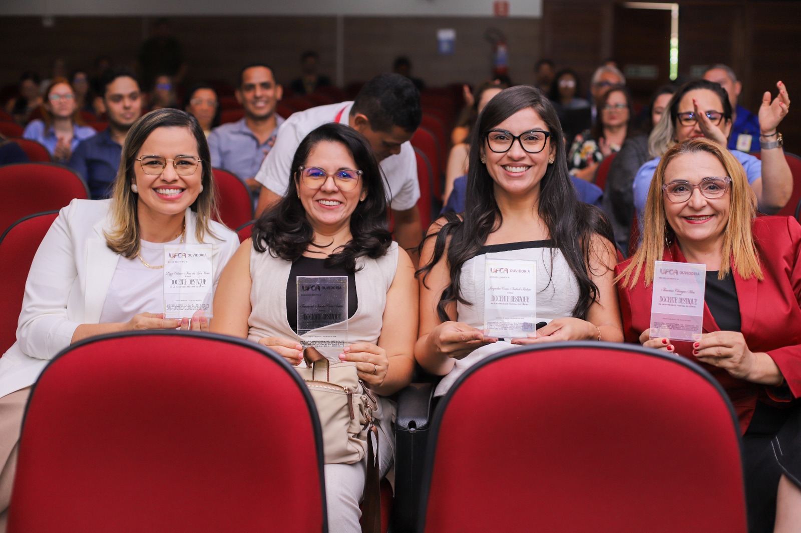 Professoras da UFCA durante momento de reconhecimento de trabalhadores e servidores destaque na universidade, promovido pela Ouvidoria. Foto: Davi Moreira – Dcom/UFCA