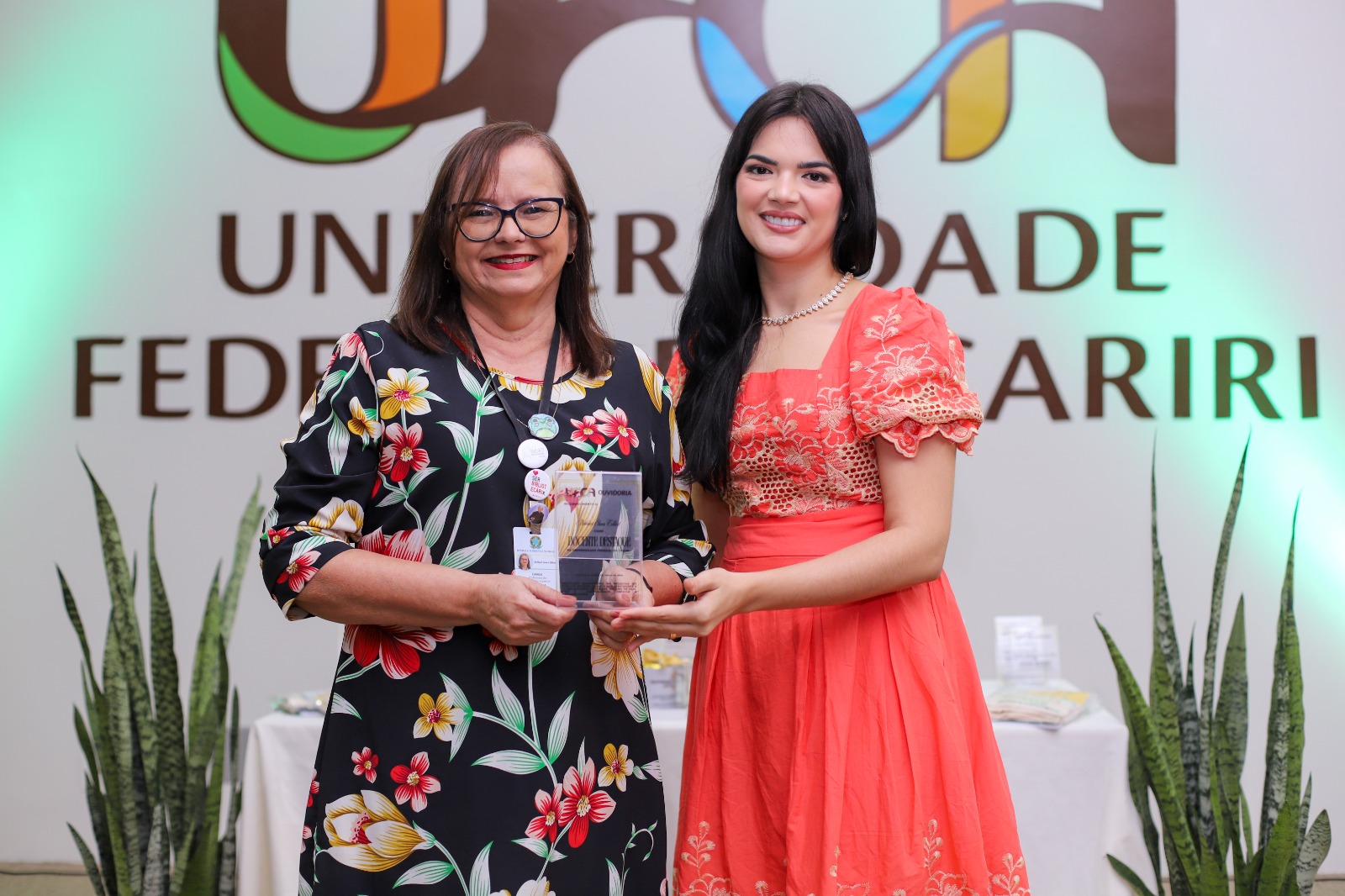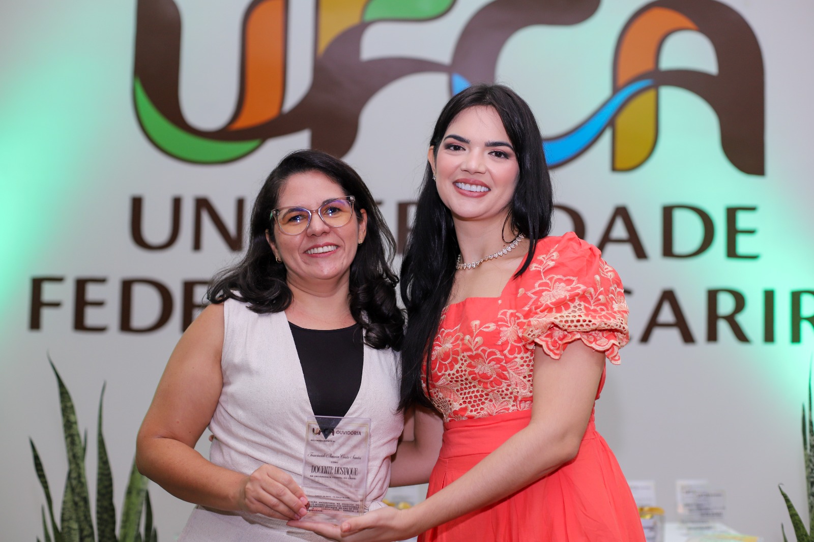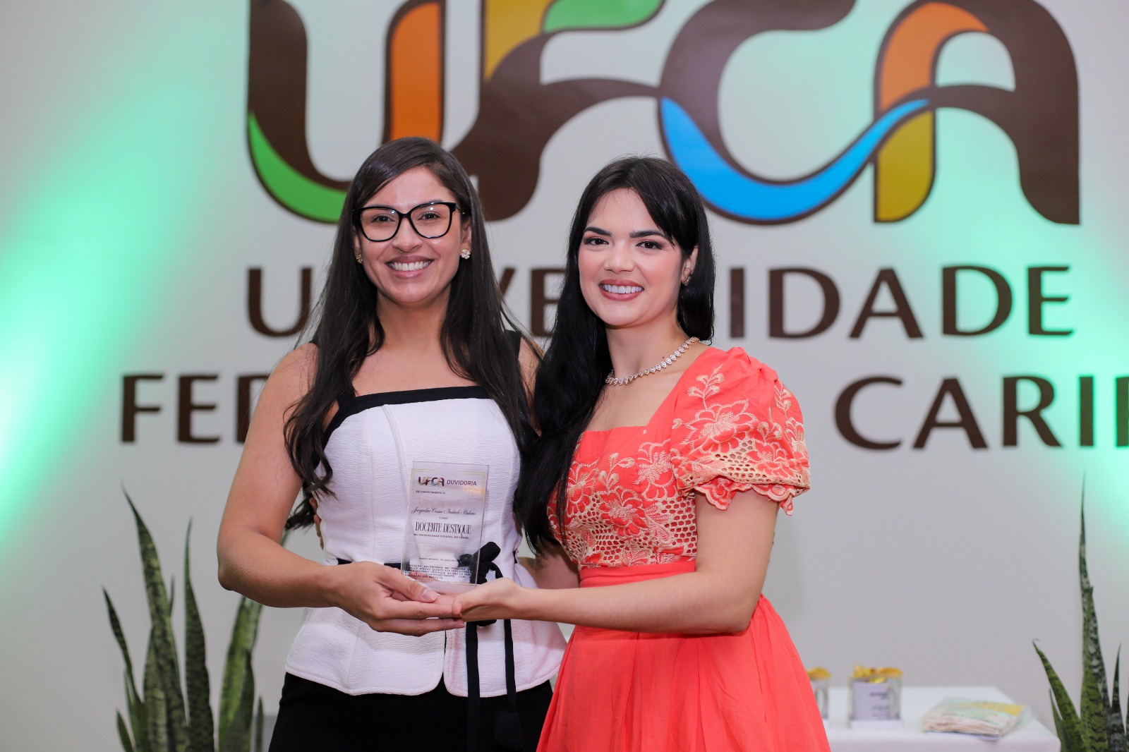 Professoras da UFCA durante momento de reconhecimento de trabalhadores e servidores destaque na universidade, promovido pela Ouvidoria. Foto: Davi Moreira – Dcom/UFCA