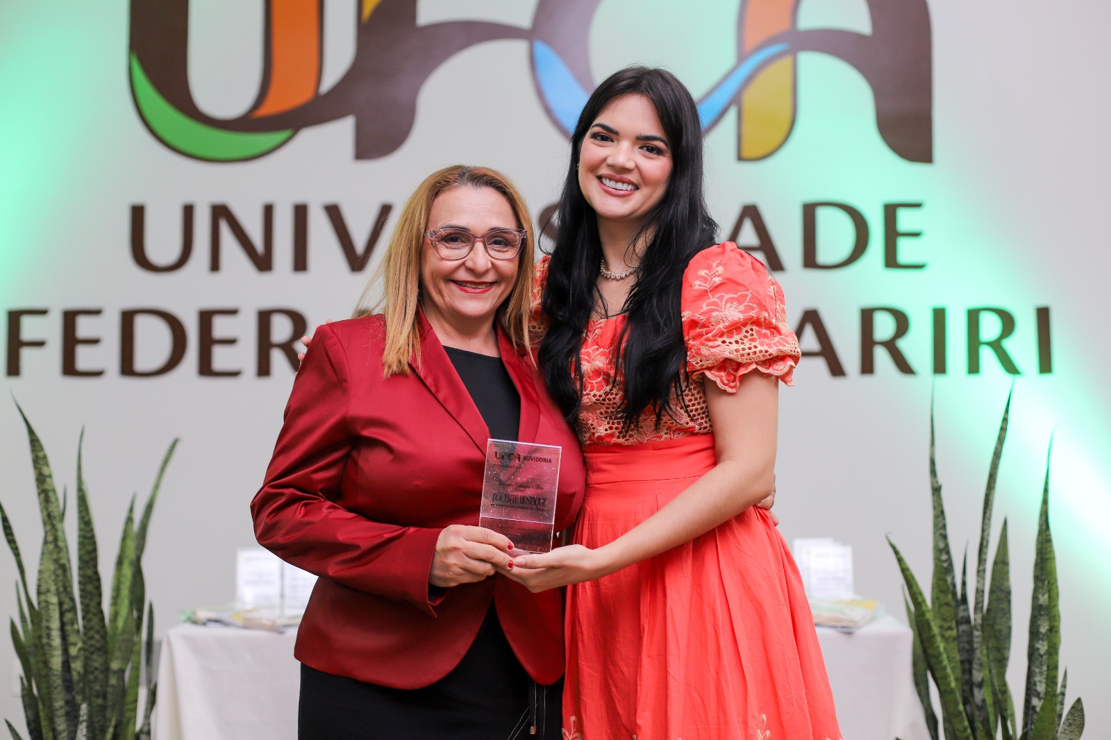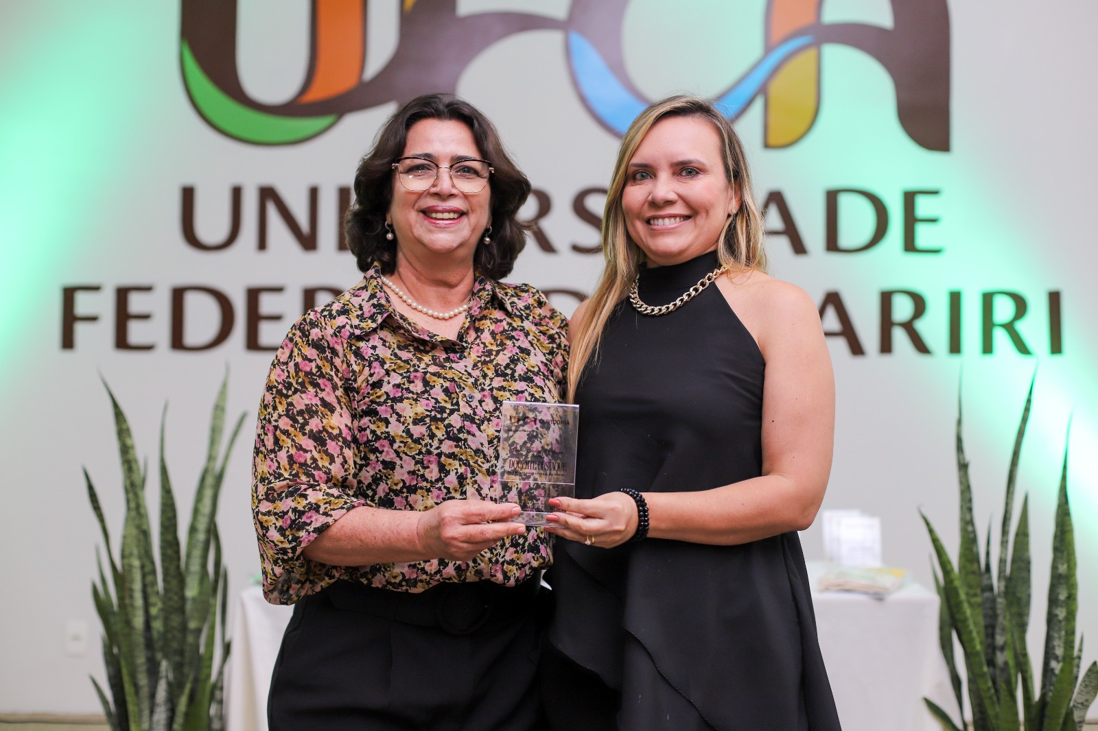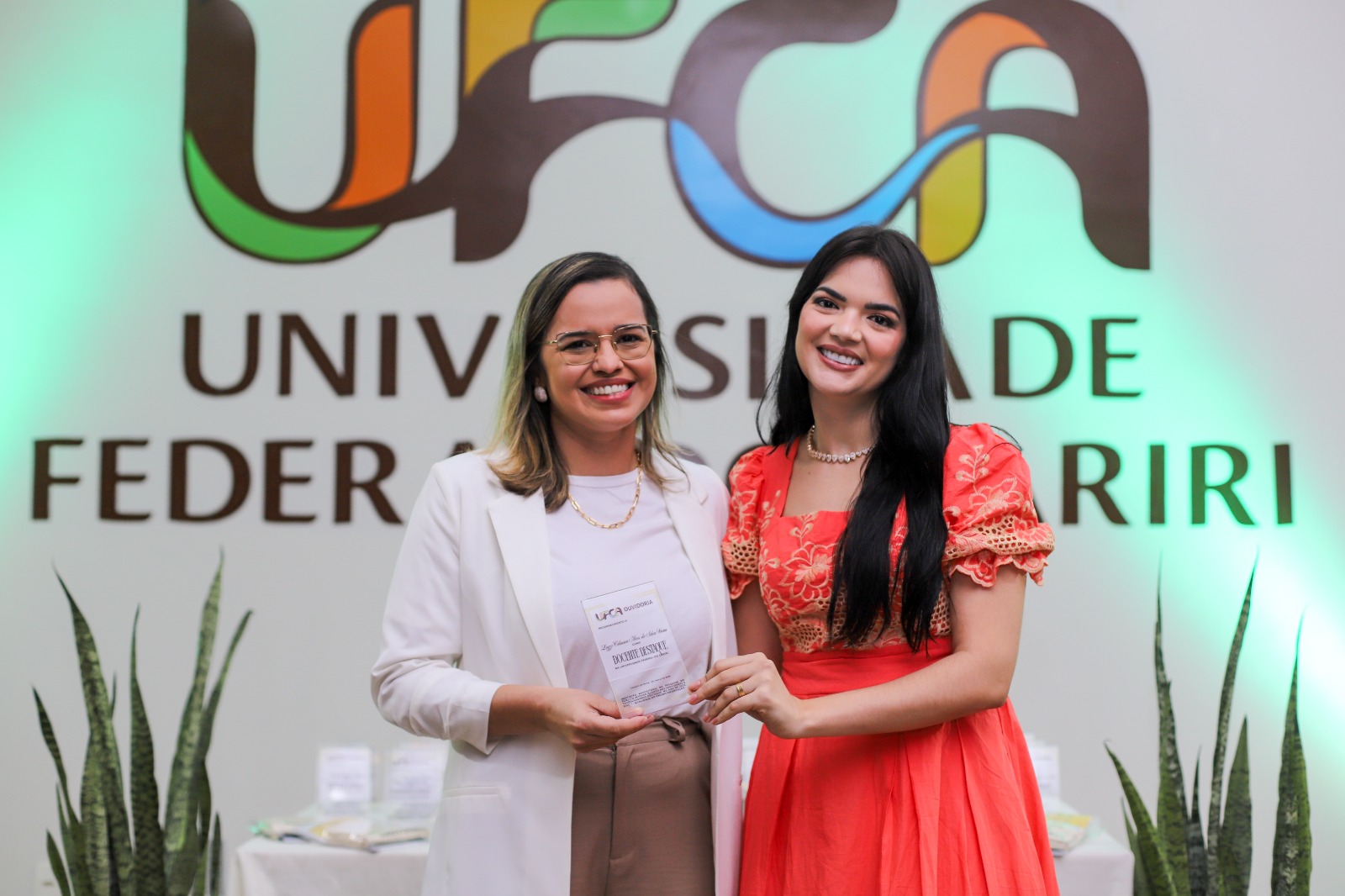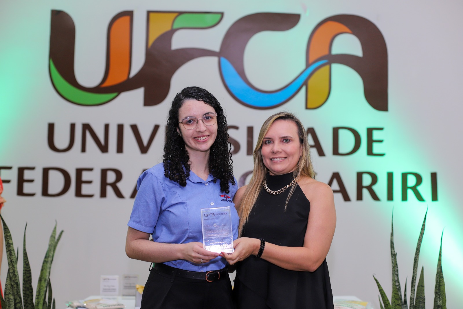 Professoras da UFCA durante momento de reconhecimento de trabalhadores e servidores destaque na universidade, promovido pela Ouvidoria. Foto: Davi Moreira – Dcom/UFCA