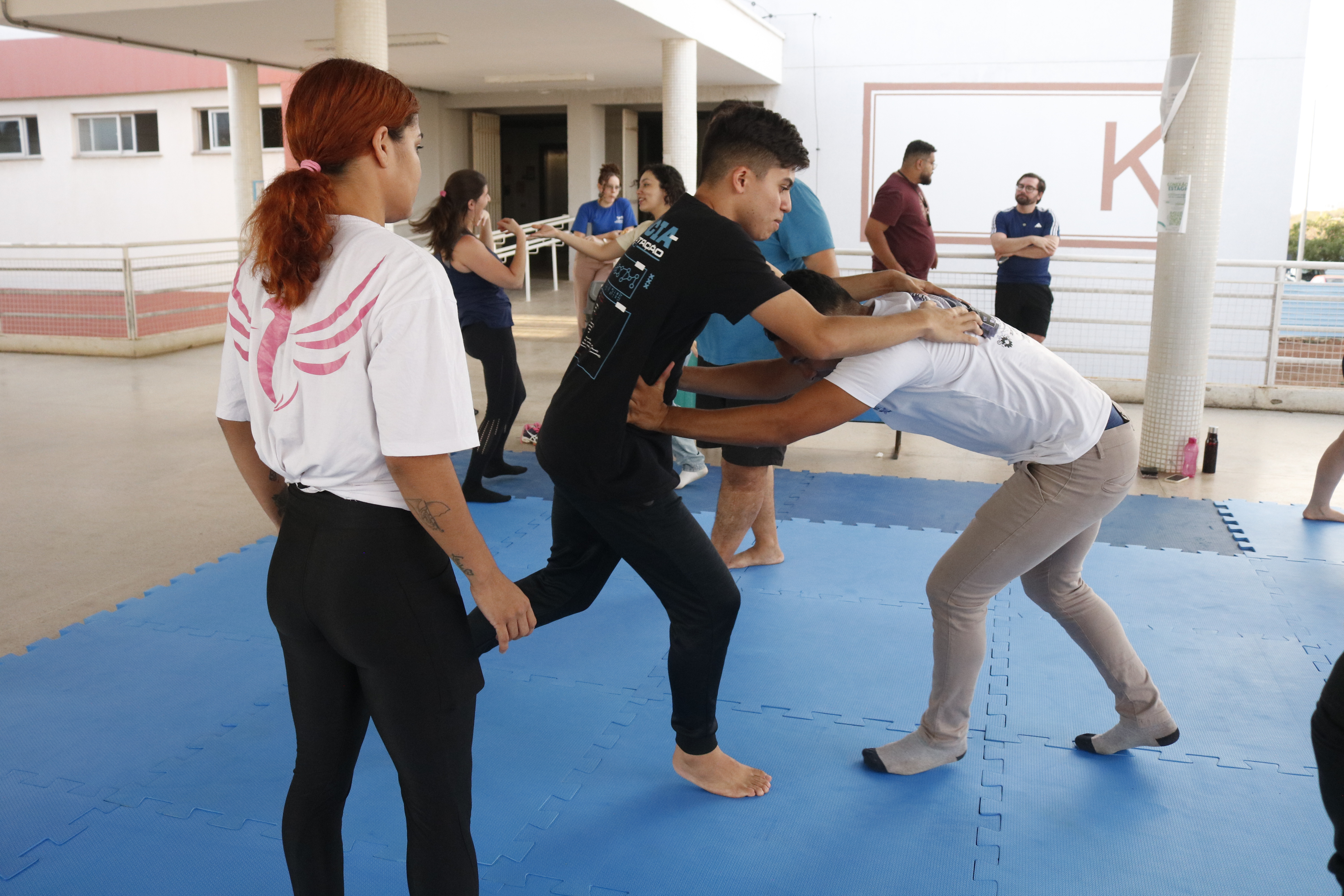 “A defesa pessoal é importante para toda a comunidade que vocês abrangem. Trazer o mínimo de entendimento sobre o tema prepara os alunos para várias situações que possam enfrentar no dia a dia, no trabalho, em qualquer outro lugar”, explicou.
